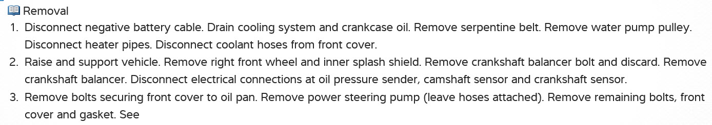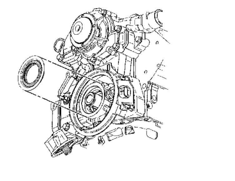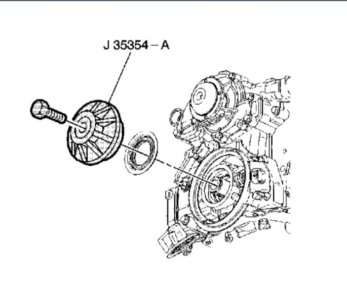 As with many procedures on the 3.5L (VIN H) DOHC engine, oil pump removal is a long and complicated task The oil pump is located behind the engine front cover. The engine front cover must be removed. Part of the procedure is lowering the powertrain cradle, or subframe, requiring special lifting and support equipment. The steering shaft must be separated so the vehicle subframe can be loosened and lowered. Careful work is required for reassembly. This is not a job for the inexperienced or ill-equipped. Be very sure of your diagnosis before attempting to remove the oil pump on this engine, especially with the engine still in the vehicle. In addition, a pair of special tools, GM #J 42042 Camshaft Timing Clamps, is required to hold the camshafts in place once the timing chain is removed. This tool, when properly installed, will be fully seated on the camshaft ends with the camshaft flats parallel to the cam cover sealing surfaces. This tool prevents unexpected camshaft rotation caused by valve spring pressure. This tool must be installed immediately after cam cover removal. This engine has no valve timing marks. Once lost, there are no pins or keys to help you re-establish valve timing. If valve timing is lost, it is very difficult to restore.