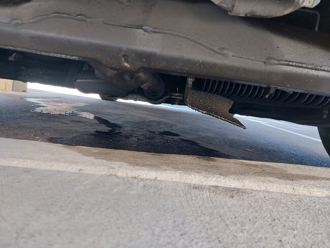 Alright, once again, I have found another problem with this car. I'm starting to regret buying it. Anyway, I just drove 6 miles, and hadn't driven it since this morning. And as soon as I shut it off, the oil, well I think it's oil, it smells like burnt oil, started spewing onto the ground. I have drove it further w no problem, granted today it's like 100°, I live in Phoenix Az. My mechanic had said there isn't a case or cover over where the oil is, and is causing it to leak. Do you think the oil got so heated it caused this? I included pics of it. The 2nd pic is from the ground looking up under the engine.