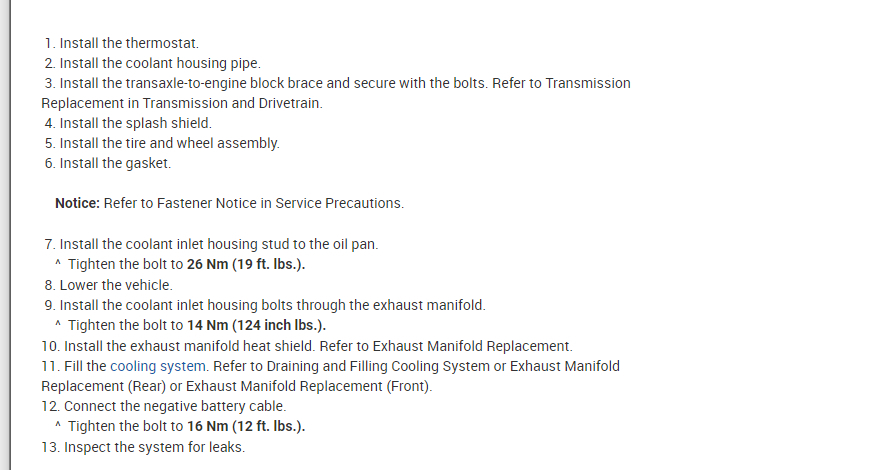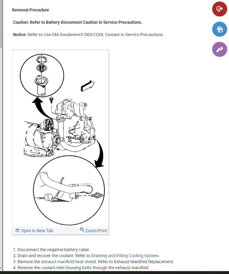 The thermostat is located in the heater hose so I will attached the info for this.