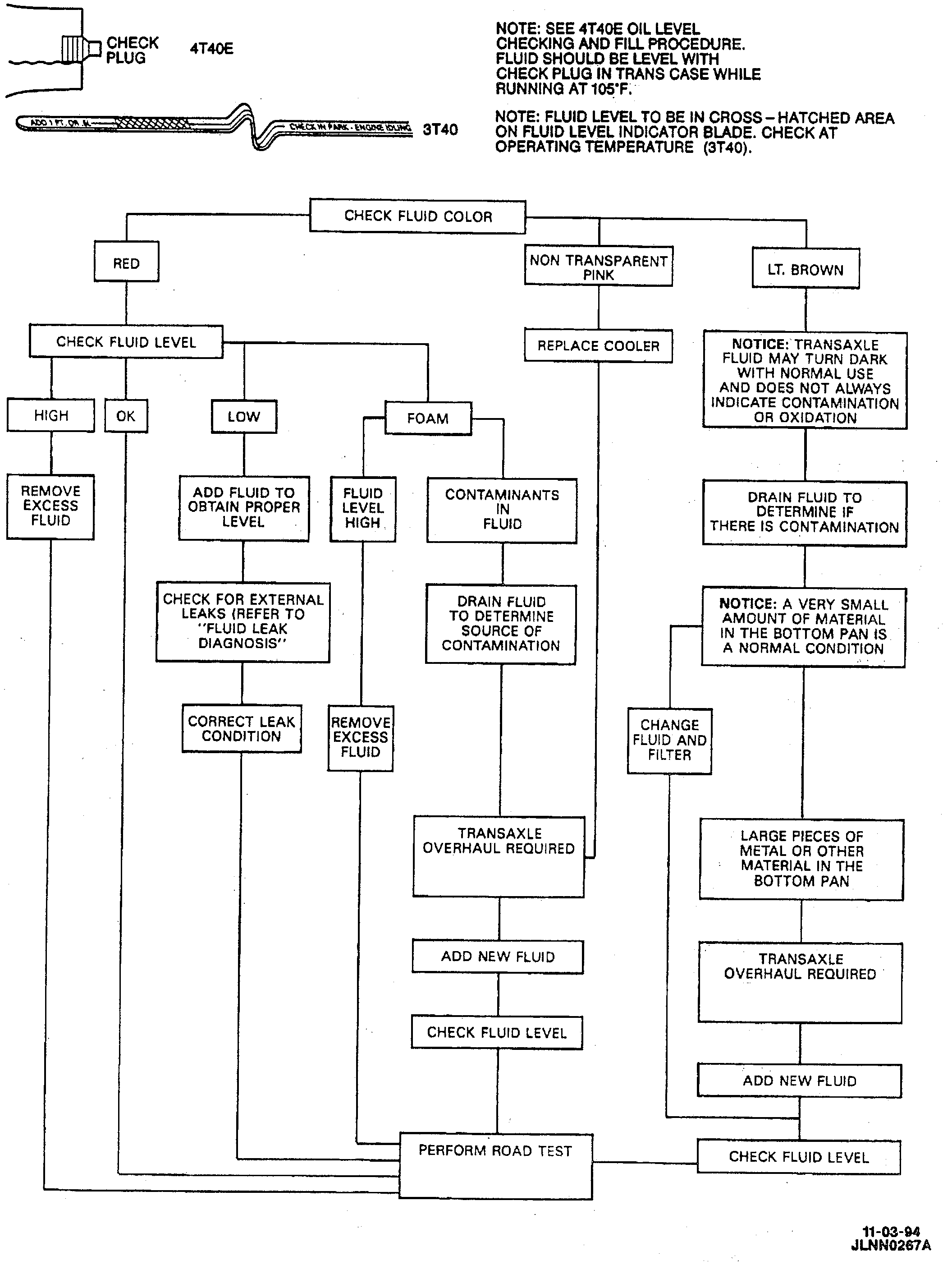 Vehicle Maintenance Fluids Fluid - A/T Testing and Inspection Component Tests and General Diagnostics 4T40-E/4T45-E Automatic Transaxle Transmission Fluid Checking Procedure