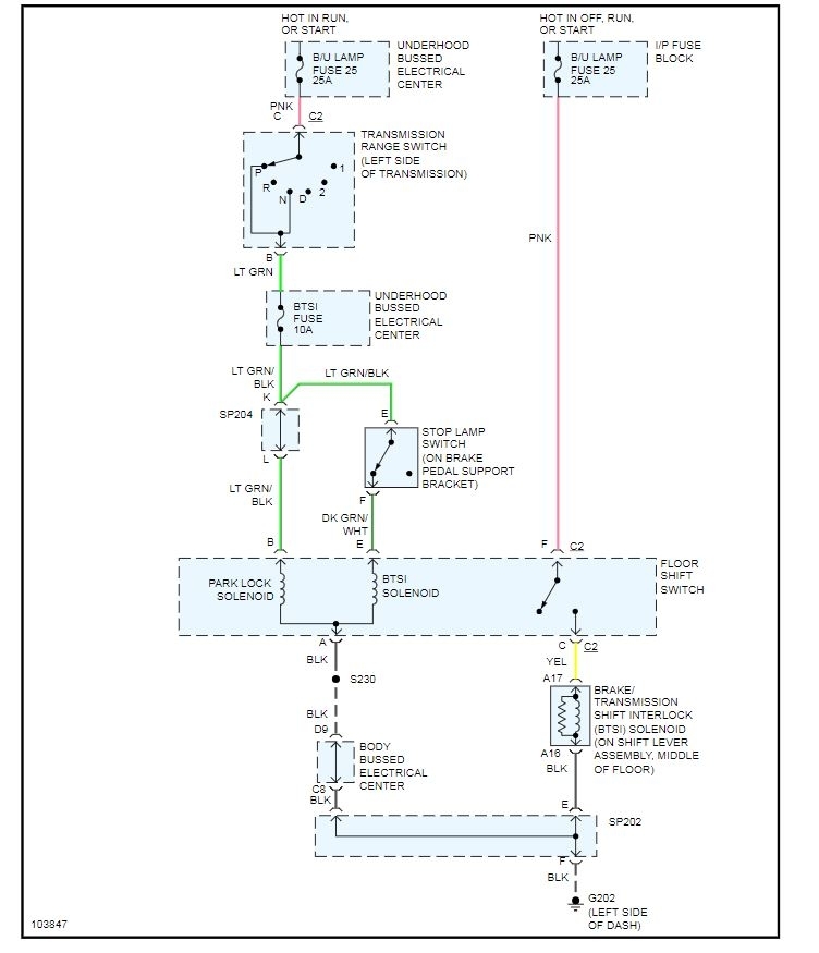 The gear shift is stuck in park. When you press on the brake it is suppose to release the button on the shift for you to engage the shifter to drive, etc. The button will not release.