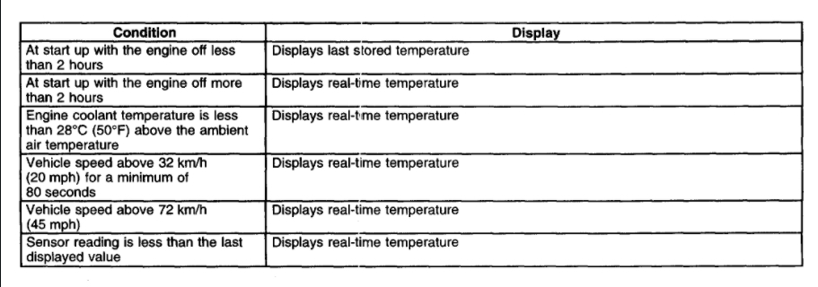 My Bravada has a temperature read-out that tells me the outside temperature. This seems to have an affect the air conditioner. For example, the temperature outdoors today was 95. The outdoor reading in my car said 40. My AC starting blowing warm air. Where is the location of the sensor that gives that outdoor reading?