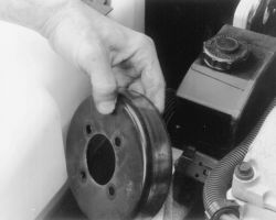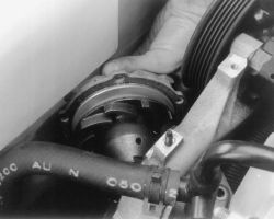 7. Remove the retaining bolts, then remove the water pump pulley.