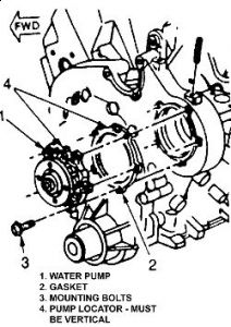 8. Unfasten the 5 water pump attaching bolts, then remove the water pump and gasket. Discard the gasket.