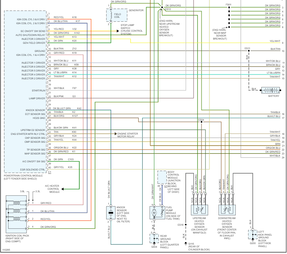 • PCM has only 2 plugs (pins 1-40) & (pins 41-80)