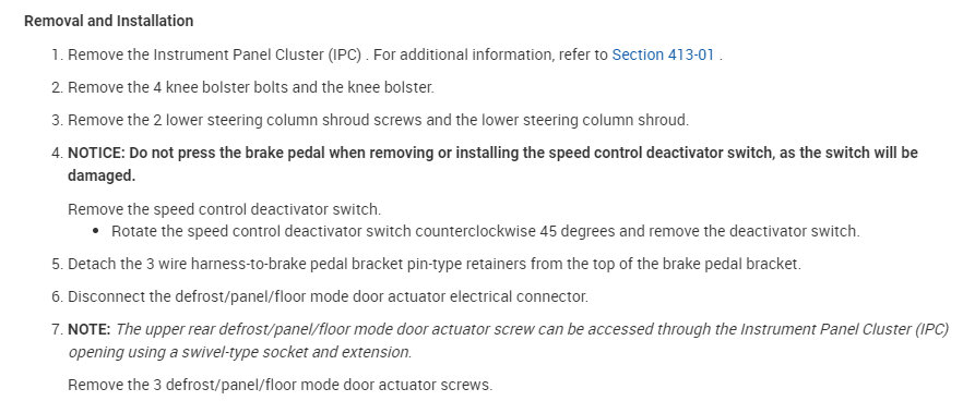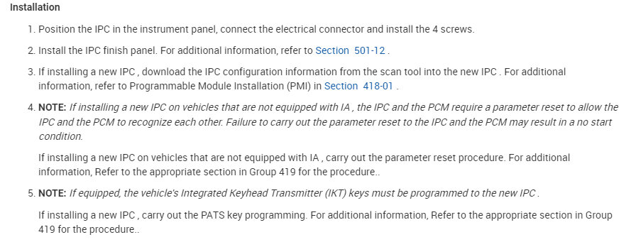 1) says remove Instrument panel cluster (ipc) refer to Section 413-01. Do you have a copy of that?