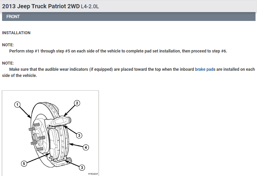 Perform step #1 through step #5 on each side of the vehicle to complete pad set installation, then proceed to step #6.