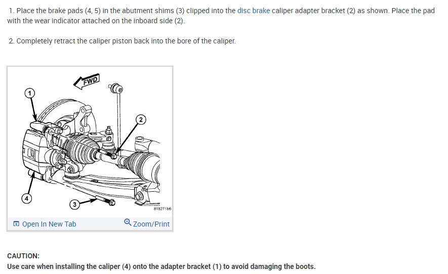 Use care when installing the caliper (4) onto the adapter bracket (1) to avoid damaging the boots.