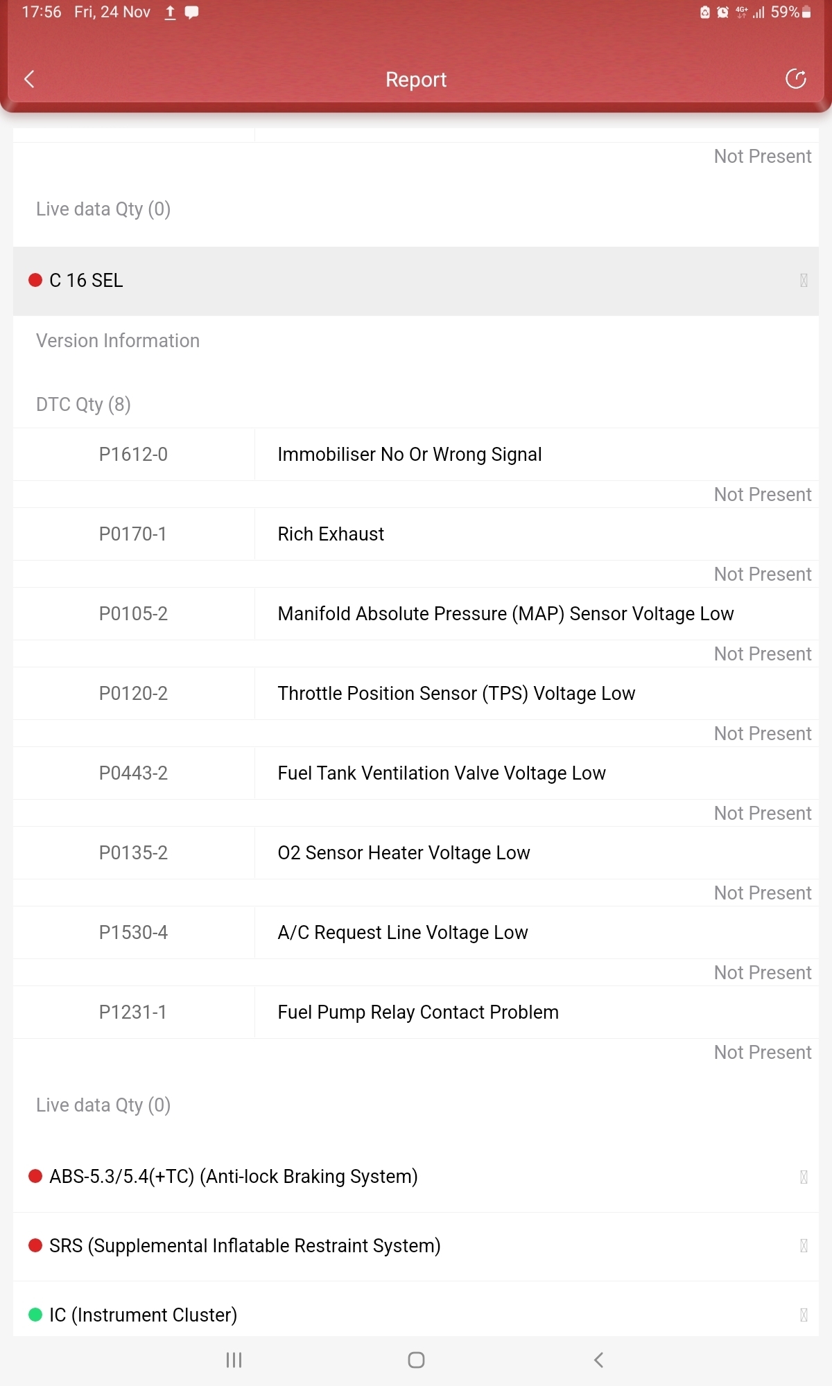 Before disassembly, I scanned for codes, and they are attached. Now the scan tools classify all of them as "not present" at the moment when I scanned for them, so I take that to mean that they occurred in the past but were not present, I stand corrected though.