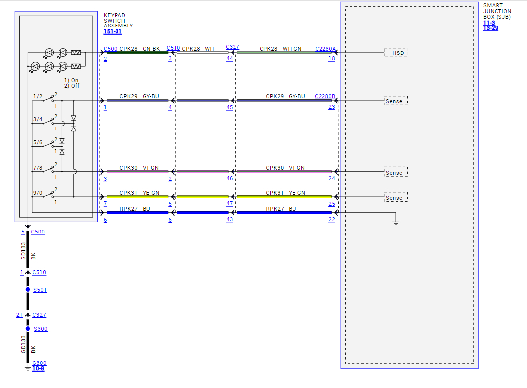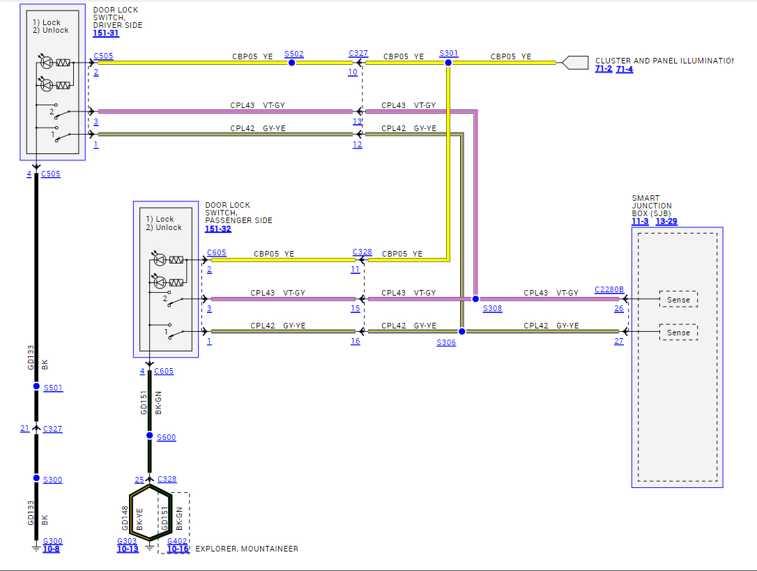 Diagram 3 is the two Front Door Lock switches. And the 4th diagram is the Keyless entry keypad.