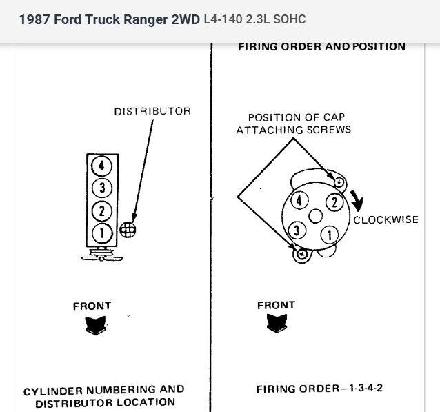 EFI— I need to know the placement of the wire order on the distributor cap. I've had a intermittent stutter for quite a while. Replaced fuel pump, fuel filter, cleaned EGR, new plugs, wires, rotor and cap. New muffler too. I downloaded the Clymer repair manual online and it shows different than I have mine. Although I have found references online that show I in fact have it right...I suspect it is my main problem but idk what the correct position is nor do I know how to align the timing if I do in fact have to move them. I have #1 at bottom left then #3 then 4 then 2 going clockwise. Thank you for y'all time.