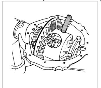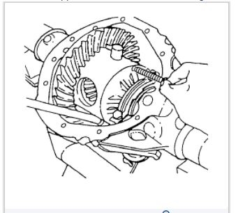On axles with a locking differential, remove the shaft part way. Rotate the case until the pinion shaft touches the housing.