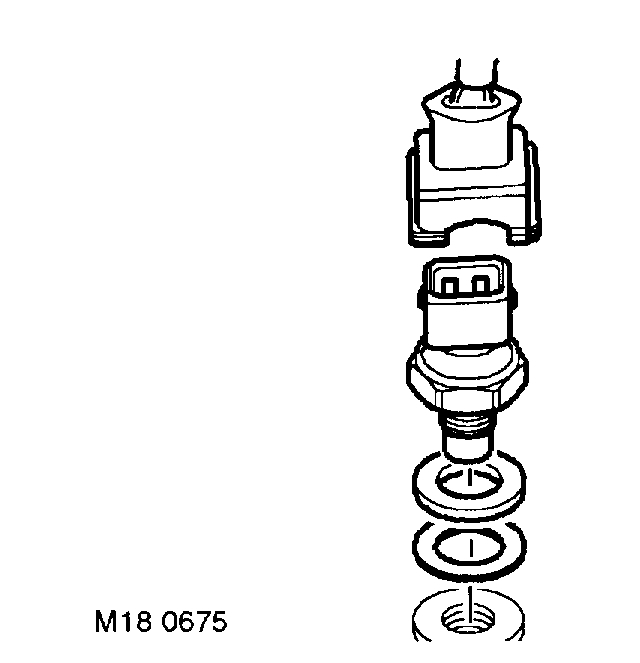 2. Fit new sealing washer, then steel shim to coolant temperature sensor.