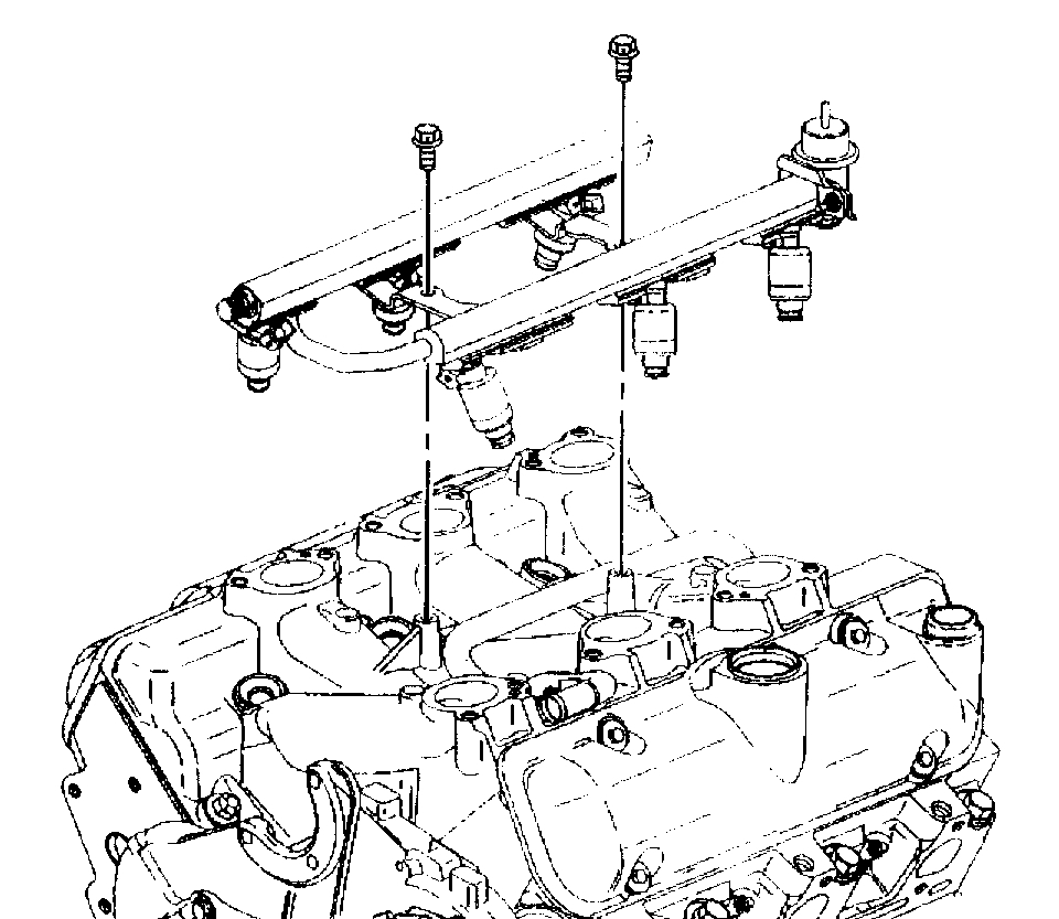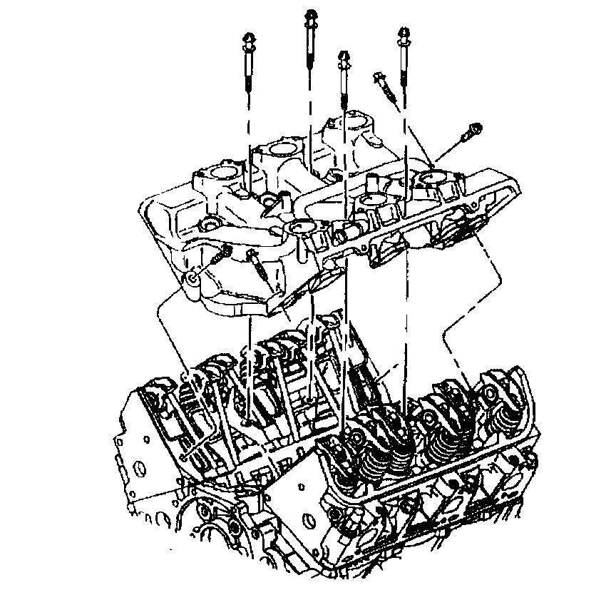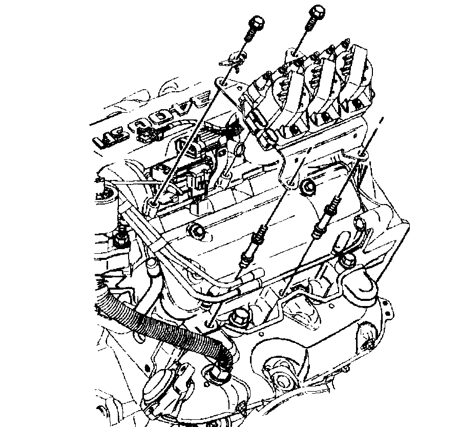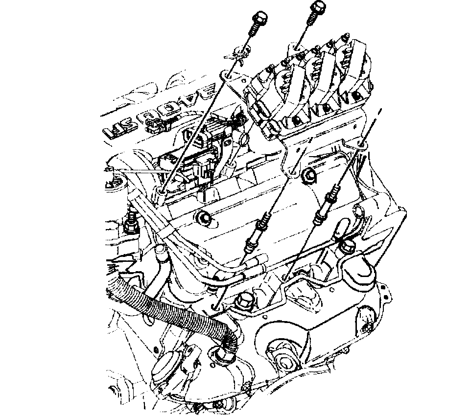 2. Apply thread lock GM PN 12345382 to the threads of the bolts. Install the upper intake manifold bolts.