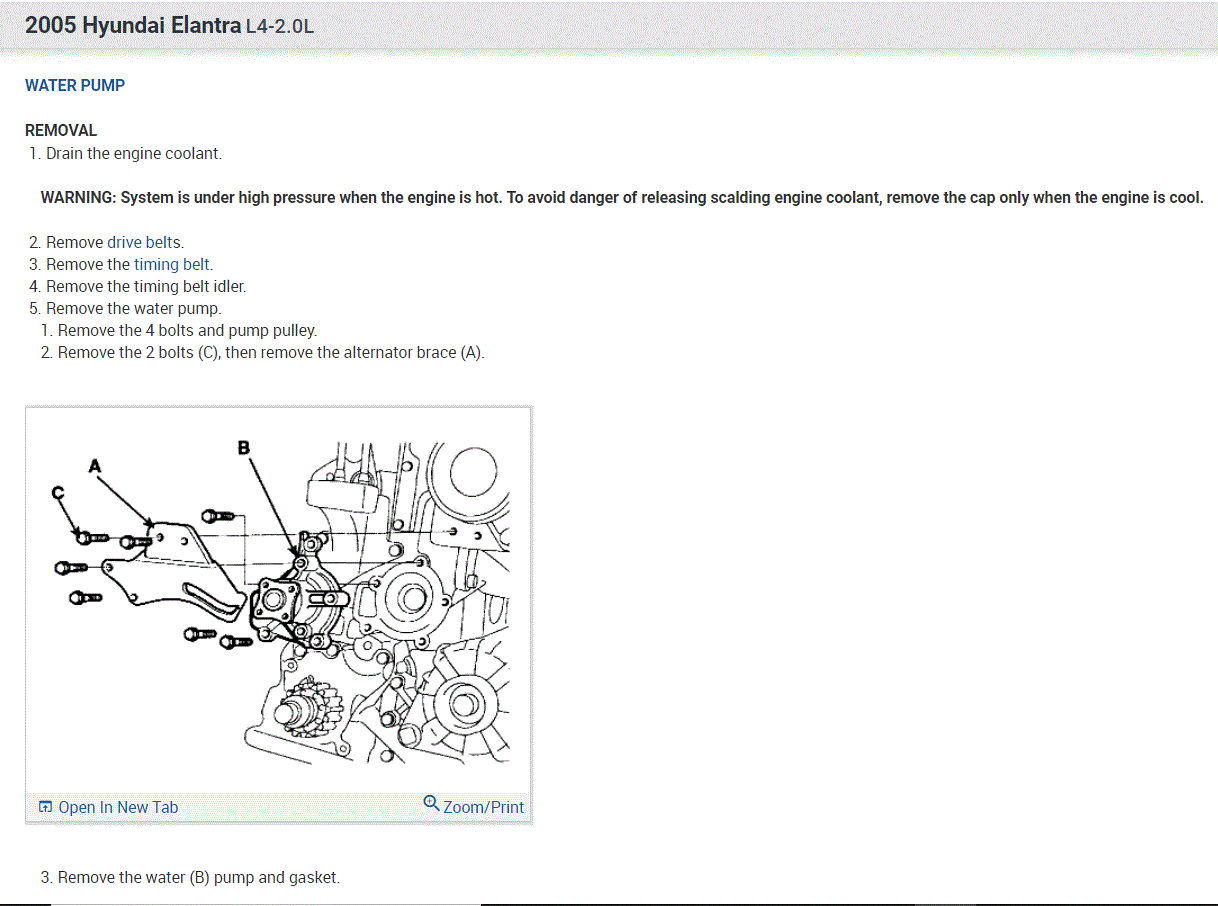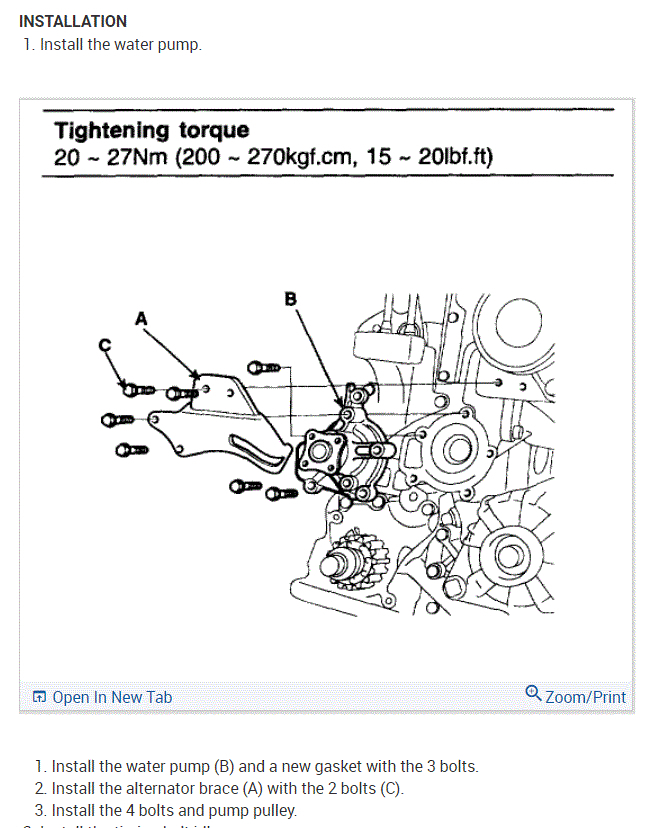 If you look at the attachments below, they provide the directions specific to your vehicle for replacement. The hard part of this repair is this. It requires the timing belt to be removed. I will first provide the directions for the removal, inspection, and replacement of the pump. After that, I will provide the directions for the removal 82