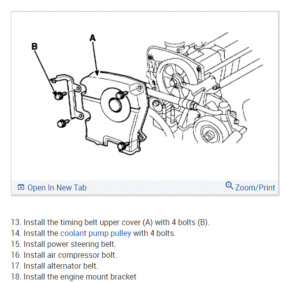 and replacement of the belt. Note: The timing belt doesn't drive the pump, but the pump mount is partially behind the belt.