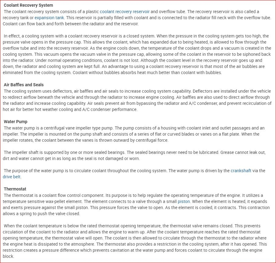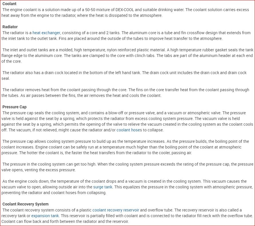 I attached the description of the cooling system for your vehicle. Two things come to mind. First, the cooling fan operation. Second, the water pump is failing.