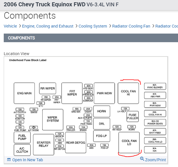 First check the relay. There are 2 cooling fan relays. Both are located under the hood fuse box.