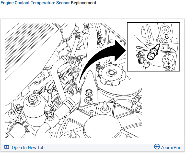 Let me know what you find. Please go over this guide and get back to us. Here is the location of the coolant temperature sensor and I will email it to you. Check out the images (below). Make sure to drain the coolant first with the engine cold.