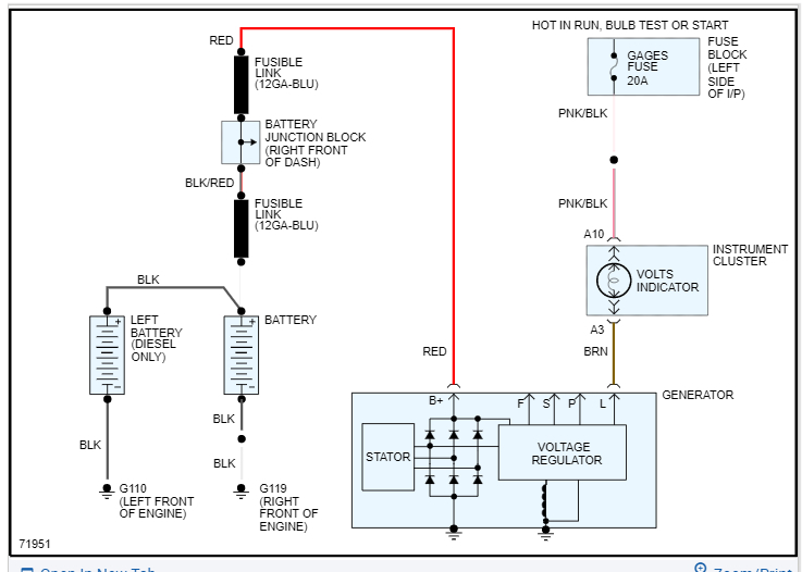 I am also attaching a wiring diagram that we can check voltage on the B+ and then each of the F, S, P, and L terminals.