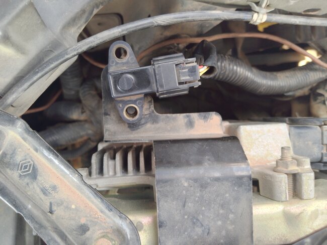 I saw one sensor close to the radiator, with three terminals. I measured the voltage at the sensor connector while the engine is running. With the sensor detached, the first pin was 5v, second pin was 13.5v, third pin was 0.1v (ground).