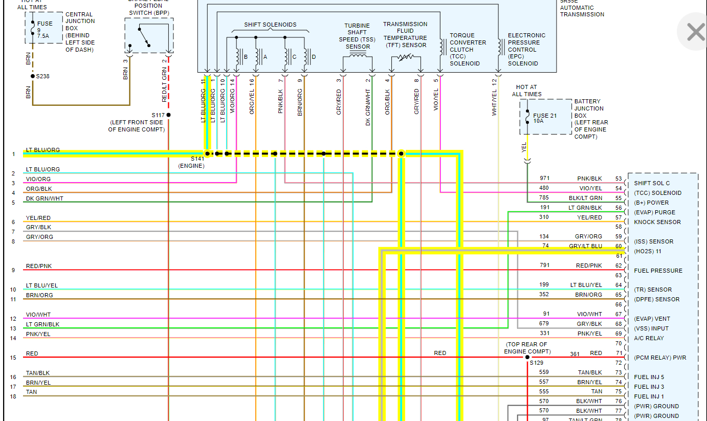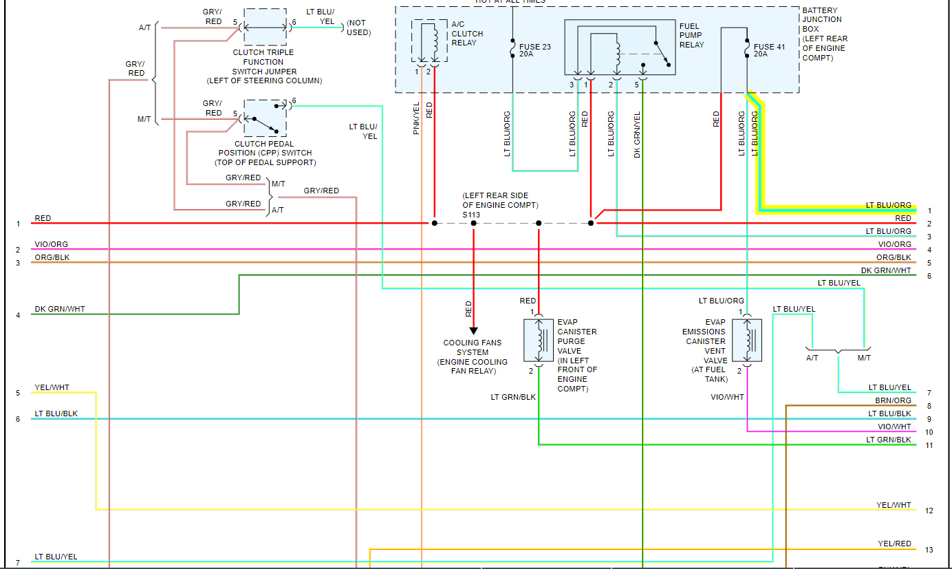 Brown/orange connector: 12.4v key off