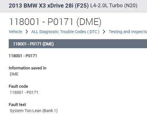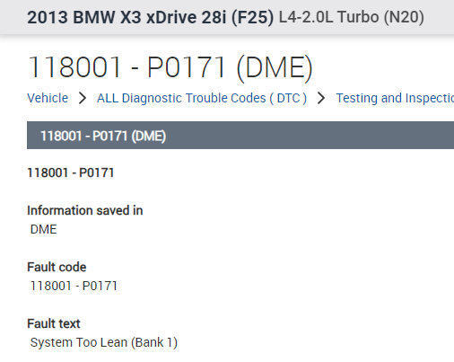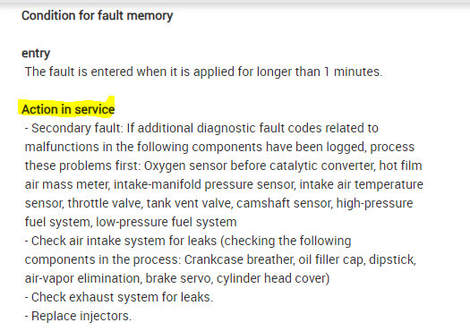 I have smoke tested everything all tight, changed fuel cap, cleaned MAF and other sensor at throttle, installed new diverter valve, which have eliminated other faults but I keep getting this code even after I erase the temp code 118001 mixture control: Fuel-air mix too lean after driving 10-15 kms but this permanent code stays, I think is there anything /part under the engine valve cover which could be causing it but do not know what part is causing.