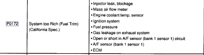 On the first run with the new injectors the P0172 showed up, and persists after fifty miles on the freeway and a code reset.