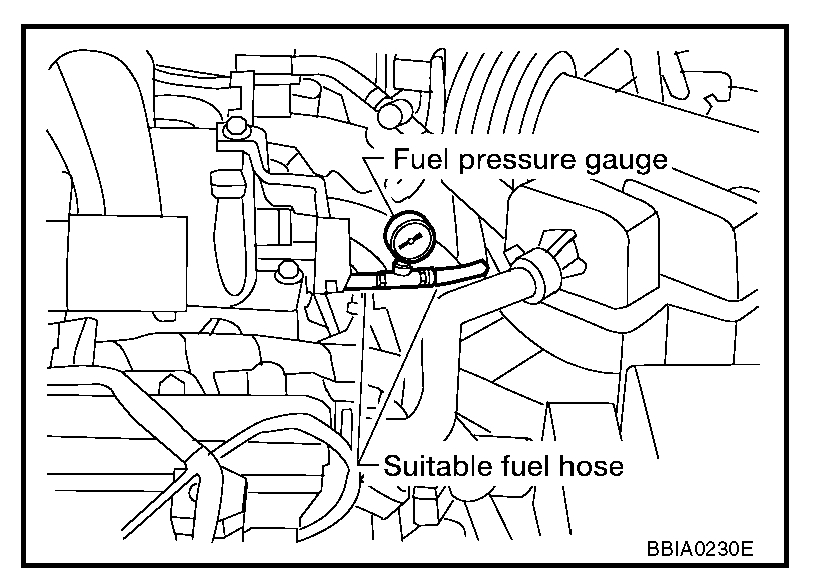 - Do not perform fuel pressure check with system operating. Fuel pressure gauge may indicate false readings.