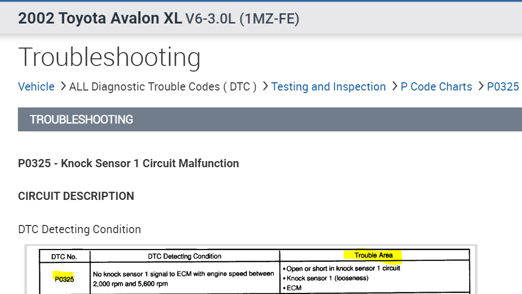 A knock sensor is used to finetune the ignition timing. With the code you have, it could be caused by a few things. See pic 1 below.