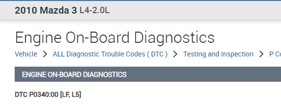 Cranks and tries for a brief second to start then throws P0340 while cranking.