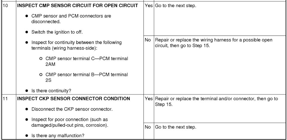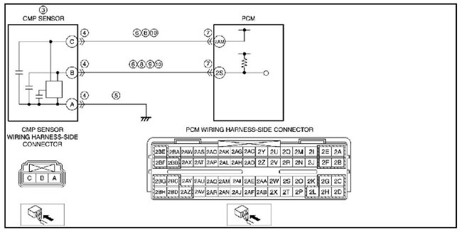 The signals from CMP and CKP look right on the oscilloscope (read at the sensor output harness ) but the amplitude for CMP is low ( around 0.5v pk to pk, while CKP signal is 5v pk to pk. )