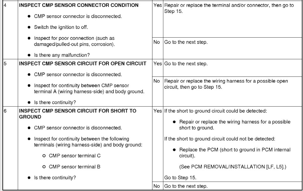 Possibly find a known good reading for CMP sensor in a running vehicle with same engine.