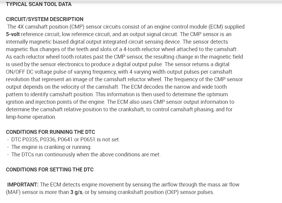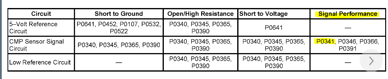 Car starts just fine but has a rattle noise whenever accelerate and code pop up P0341 Saturn - Camshaft Position Sensor 'A' Circuit Range/Performance -- Possible causes: - Faulty Camshaft Position Sensor - Camshaft Position Sensor harness is open or shorted - Camshaft Position Sensor circuit poor electrical connection - Faulty starter motor - Starting system circuit - Dead (weak) battery I've changed the sensor but still same issue I've tested the connector its getting power and ground and a 5 volt signal. What else should I check? The check engine light always on before start the car but goes off after car is running. But whenever I check for codes with scanner it's no code stored, but p0341 pops up under pending codes. Whenever I clear code and turn car off the check engine pops right back on even though there's no code stored in ECU.