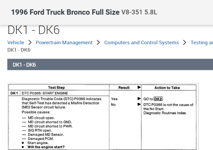 Hi, I’ve been having trouble with a P0385 - Crankshaft Position B sensor check engine light. I understand that sensor is really just a “misfire sensor” and I was having some misfires on cylinders 4 and 7 but nothing too crazy. I’ve recently replaced all the spark plugs and wires, ignition coil, ICM (with OEM Motorcraft from Ford) and it has a WAI distributor I put in around 4-5 years ago. New oxygen sensors as well. I tested the compression to rule out any mechanical issues and all 8 cylinders were around 110-120psi. After testing compression, the misfires on my reader went away and while that seemed promising, I’m still immediately getting a p0385 pending (after clearing codes) and shortly followed by the check engine light. I’ve also recently (2 years appx) replaced the crankshaft sensor with an OEM Motorcraft part. I also had the harmonic balancer re machined and balanced and put in the original one back in after getting cleaned up. None of these have fixed the P0385. I’ve checked the resistance from ICM to PCM on the IMD wire and got 0.3ohms. The fuel trims seem to be normal as well and nothing else jumps out on the freeze frame or live data. I’m not sure which direction to go next. Thanks for the help.