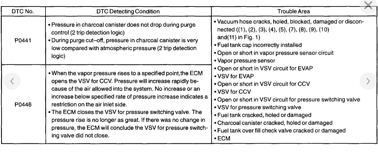Recently had this code come up. About six months ago, replaced the VSV valve, so I am guessing that is not it. Also, the engine seems to constantly revs high. I am wondering if this is a symptom of a defective EVAP purge valve? Or what is the most educated guess might be. Gas cap is fine.
