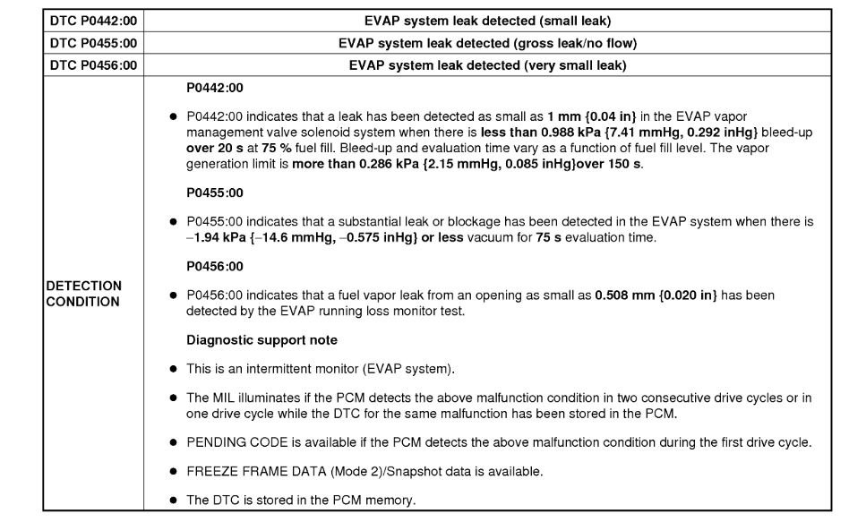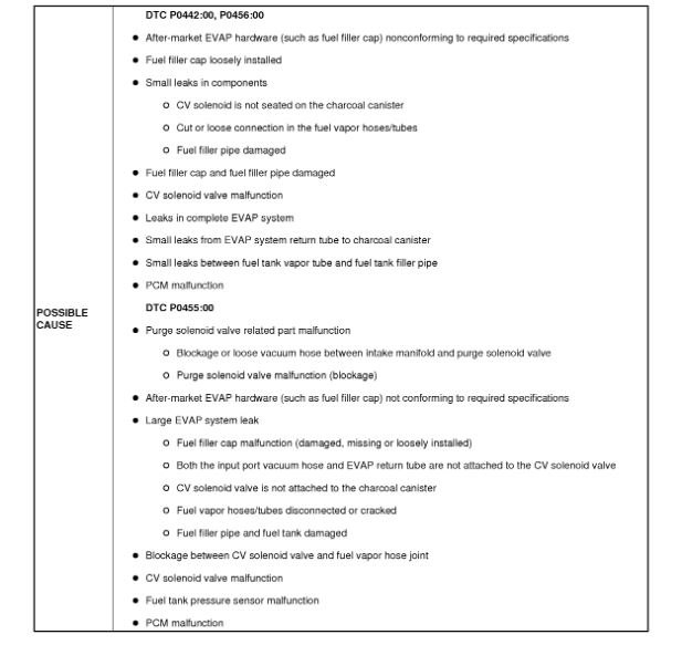 Some vehicles may exhibit the check engine light on with DTC P0456 stored in the PCM memory.