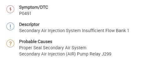 491 and 492 are for the secondary air injection system. It could be the relay or the solenoid. There are also cases that have the passages clogged with carbon. It is difficult to get to the passages as they are at the back of the motor.