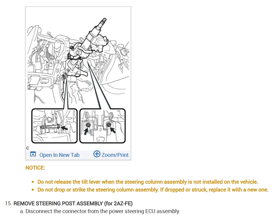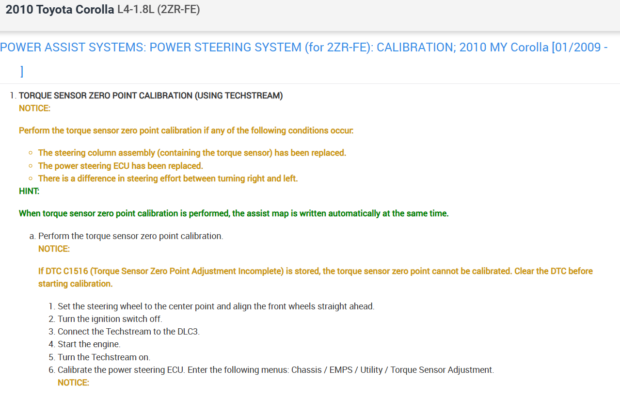 It is common for the EPS system to go out and must be replaced, here is how the job is done in the images below and I have included the recalibration instructions as well.