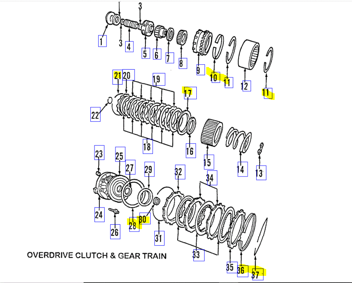 In the bottom of the pan was a broken piece of a ring, which I've narrowed down hopefully to being overdrive clutch assembly? Ring or snap ring?