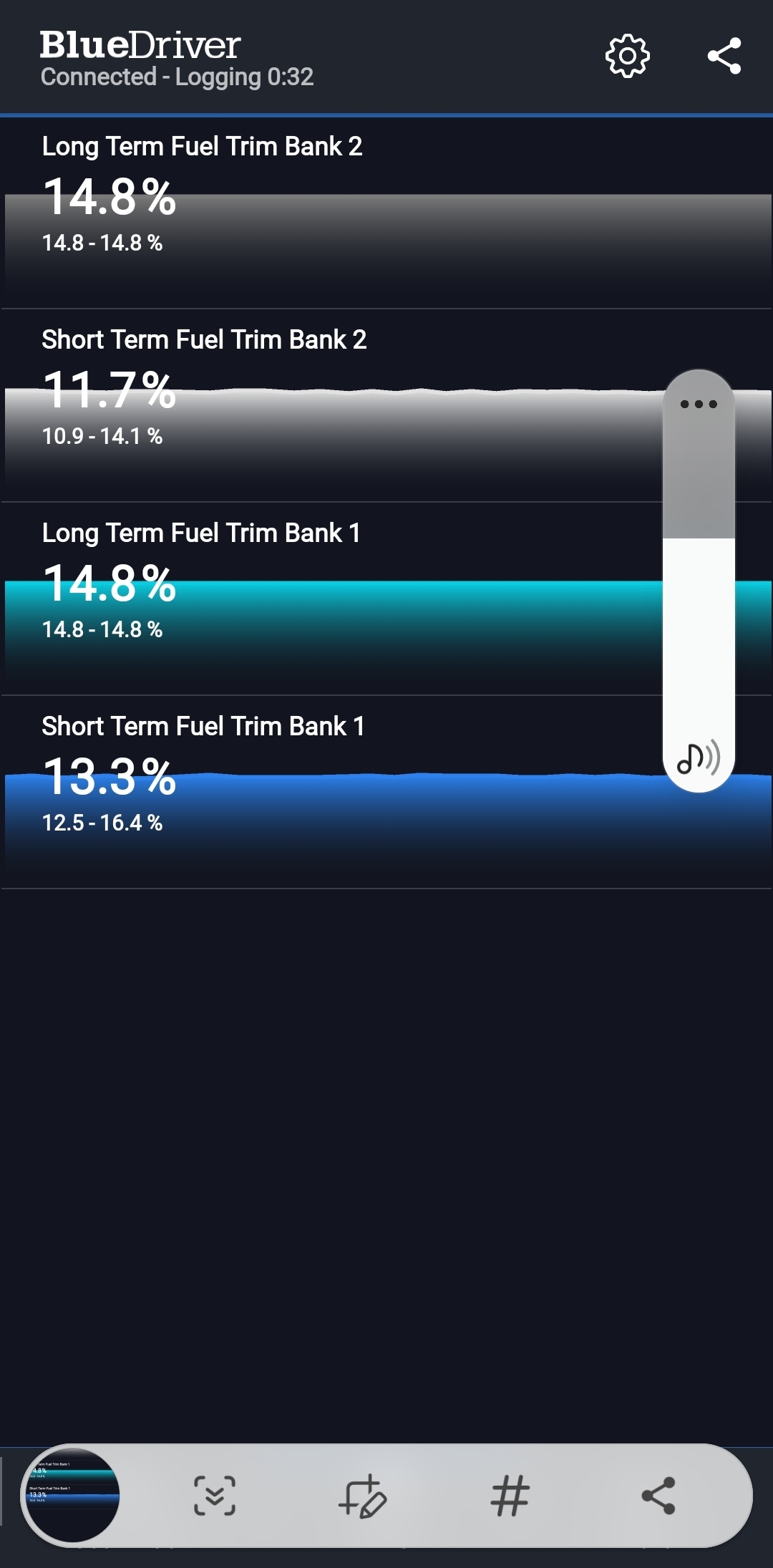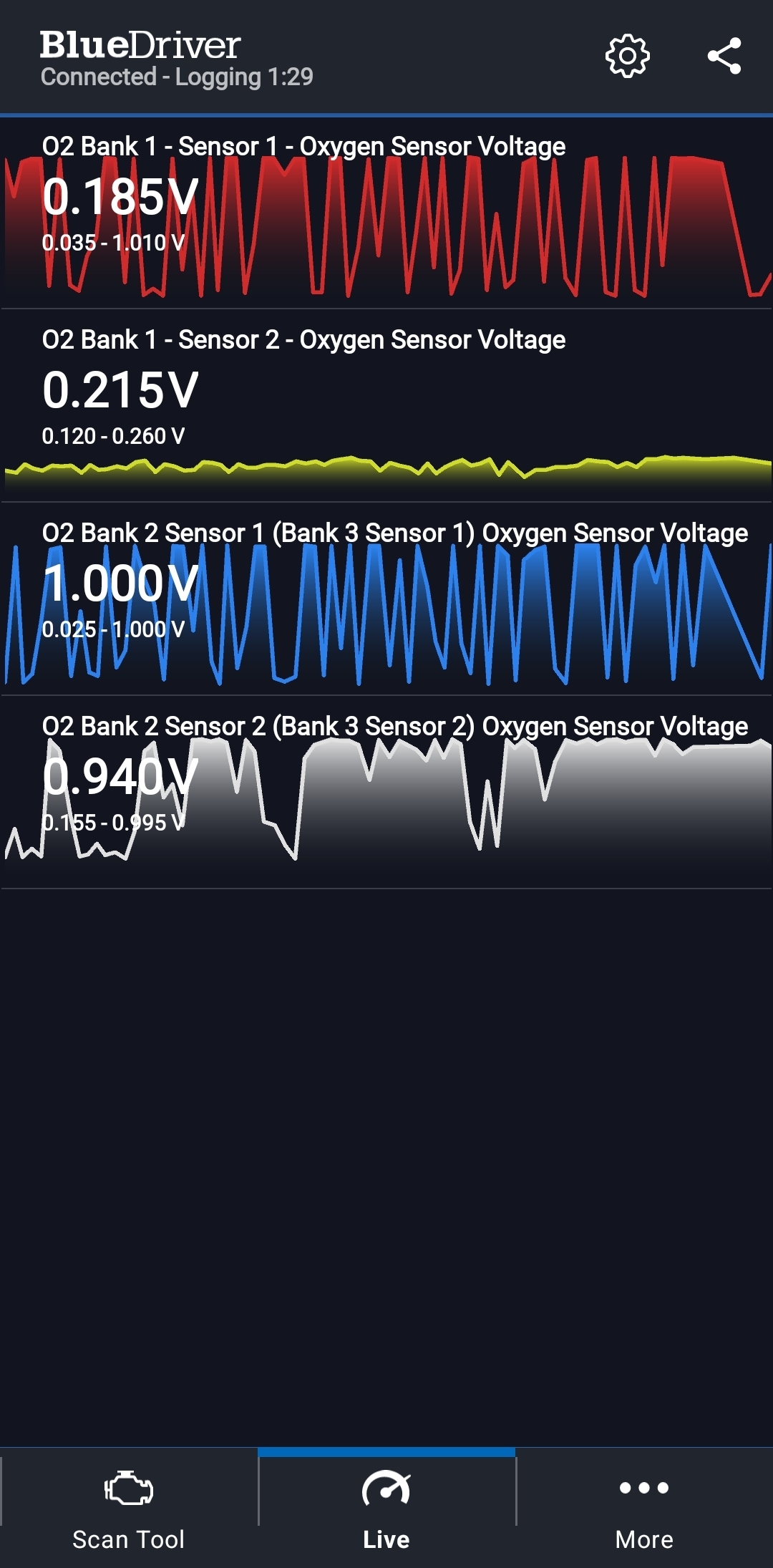 Car runs and drives fine, no problems apart from the P1179 message. The 4 areas of diagnosis I think are MAF, Vacuum, O2, Fuel Pressure. MAF was cleaned as is good. Vacuum hoses are all good. I tested Fuel pressure and its 32 at KOEO and drops to 28 when at idle. Manual says pressure should be 34-37 although I heard it should be 27-31? I changed out the Fuel Filter and tested the FPR (both were replaced in 2021) no fuel in the vacuum hose, removing the hose caused the pressure to increase to 32, blanking off the return line forced the pressure to 50+ and then held there. Never seen any leak down. I had a New old stock FPR so I changed it out regardless but nothing seemed to change per se. Now Im looking at the sensors and attached is one of the scanner screen shots. I think B2S2 looks like an issue but I cant be sure. Any help is appreciated