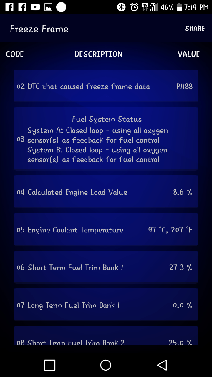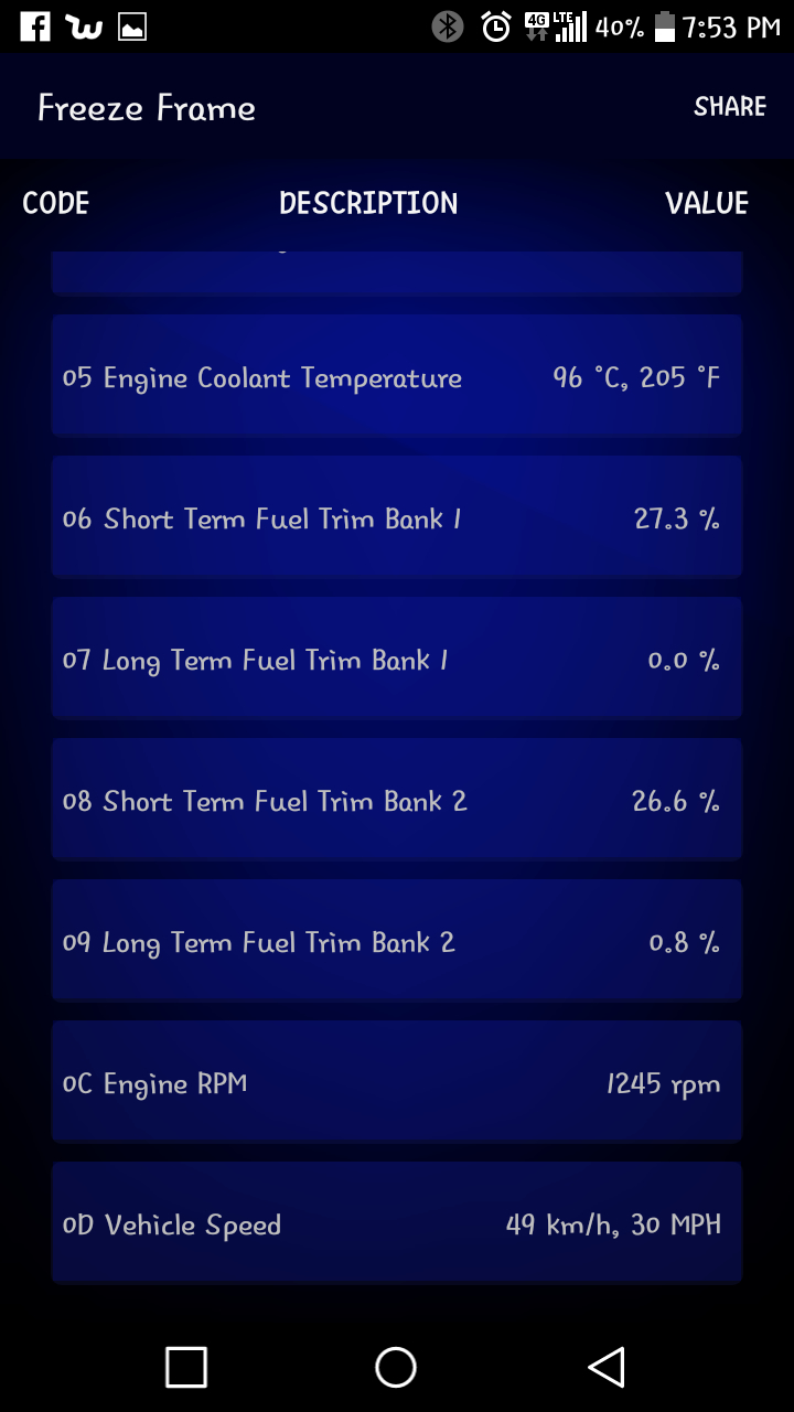 I got it back running cleared the codes and it came back. Here are recent freeze frames.