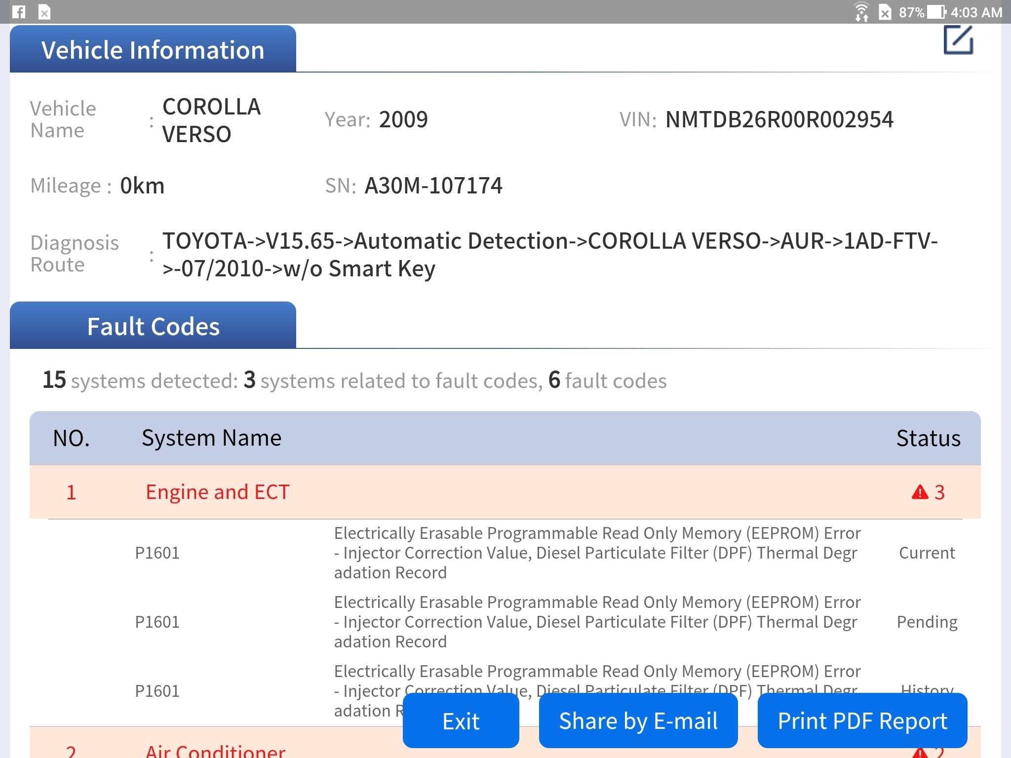 P1601:Electrically Erasable Programmable Read Only Memory[EEPROM] Error-Injector Correction Value, Diesel Particulate Filter[DPF], Thermal Degradation Record