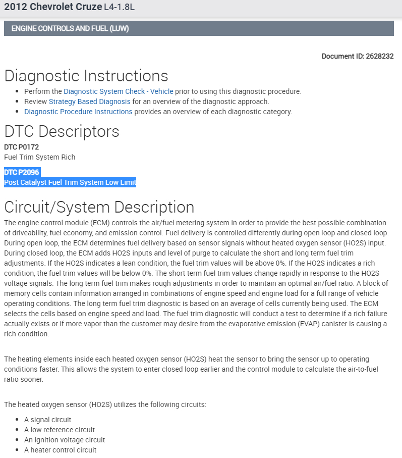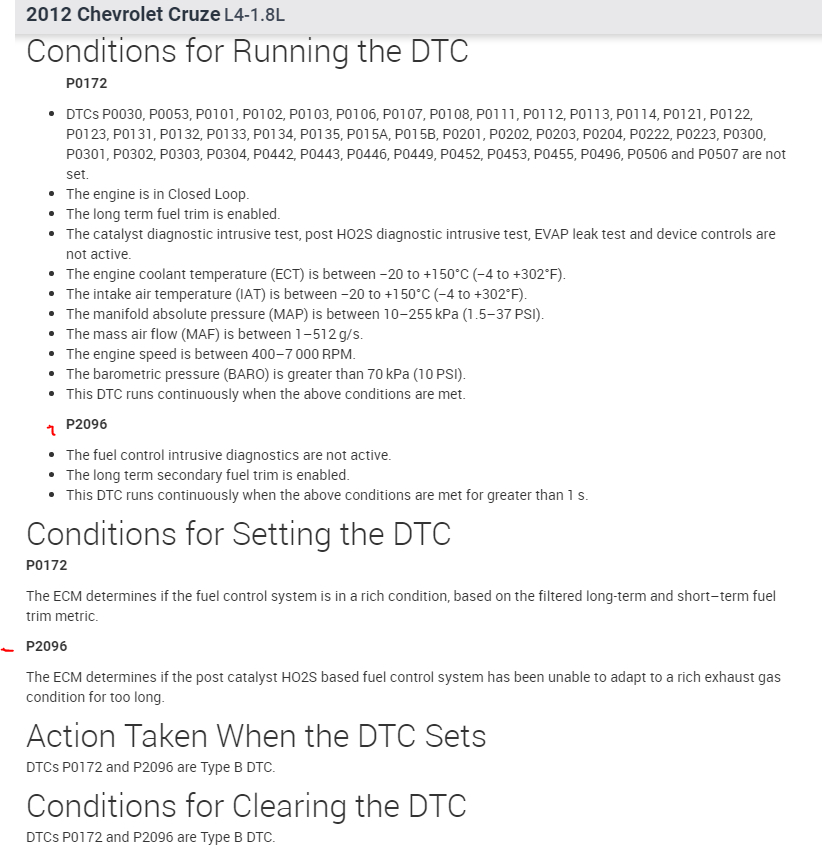 The code P2096: Post Catalyst Fuel Trim System Low Limit