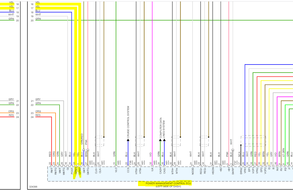 It is probably important to note that 2 wires were open circuits (both to and from OPM relay - one supplies power to the OPM and the other was the relay trigger from the Power MGMT ECU). Additionally, and probably of some relevance. The trigger wire to the relay was one color at the ECU and another at the relay indicating a junction. However, the wiring diagrams all show 1 wire direct. Furthermore, that same wire had some resistance to chassis GND (spec is that it should be open circuit to ground). I ended up cutting the original at both ends and ran a jumper directly.