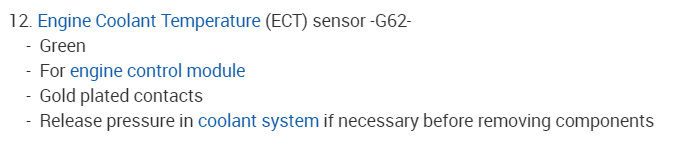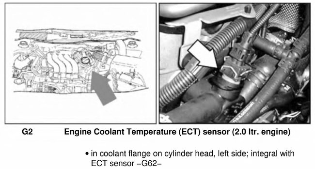 - -Replace Engine Coolant Temperature (ECT) sensor -G62- with Engine Coolant Temperature (ECT) sensor -G2-.