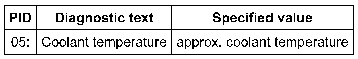 - Select the measuring value "PID 05: Coolant temperature".