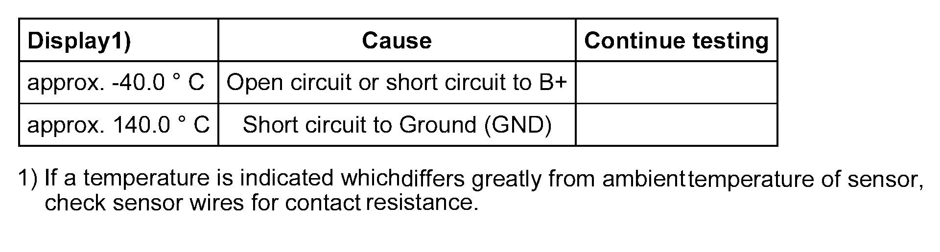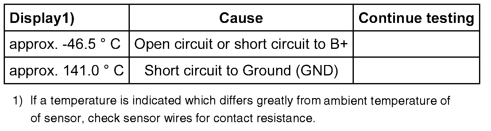 - If the engine shows problems in certain temperature ranges and if the temperature does not climb uniformly, the temperature signal is intermittent and the sensor should be replaced.
