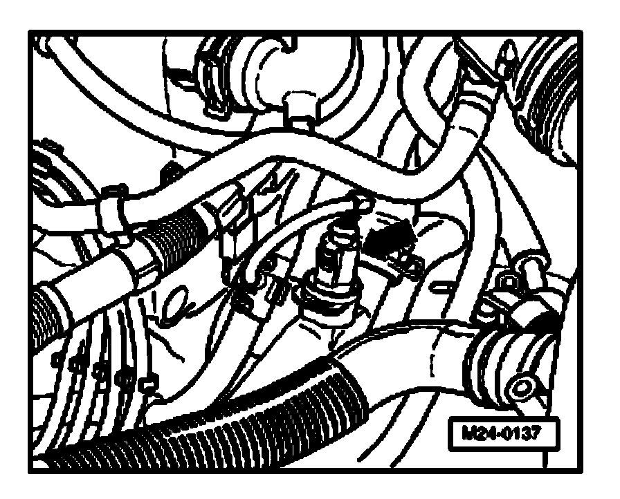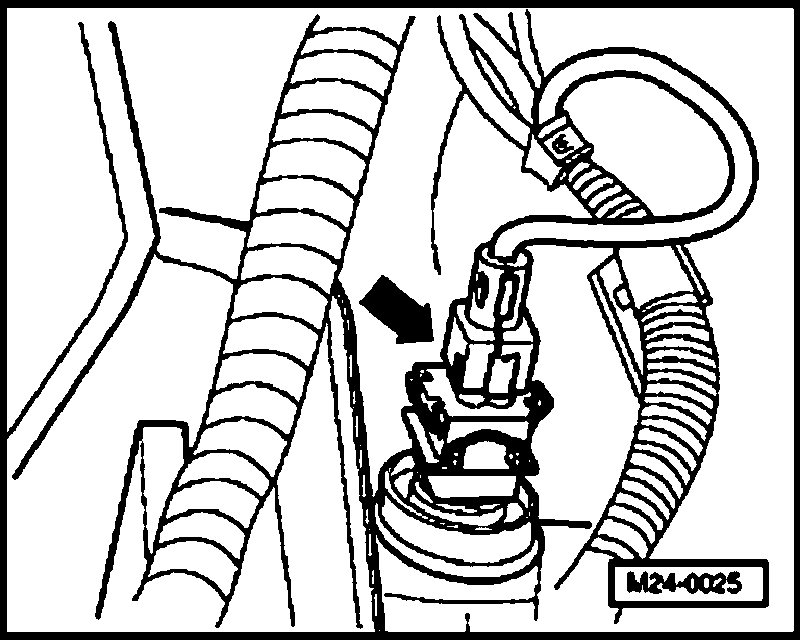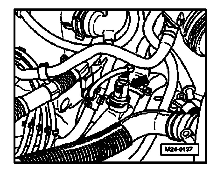 - Disconnect 4-pin connector from Engine Coolant Temperature (ECT) sensor -G62- with Engine Coolant Temperature (ECT) sensor -G2- (arrow).