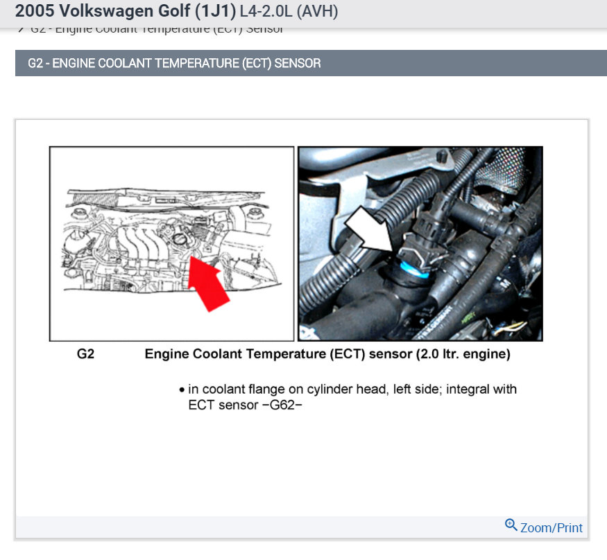 - Replace Engine Coolant Temperature (ECT) sensor -G62- with Engine Coolant Temperature (ECT) sensor -G2-.